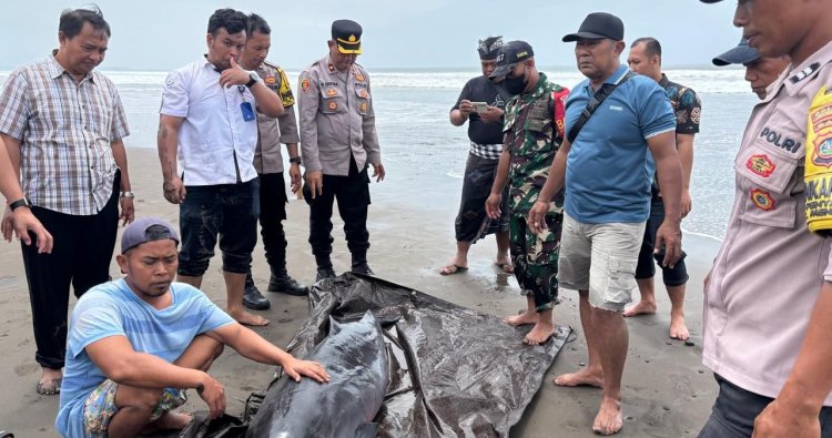 Jembrana-Kepolisian Resor Jembrana melalui Polsek Mendoyo menunjukkan respons cepat dan kepedulian terhadap lingkungan dengan menangani peristiwa terdamparnya seekor ikan paus sperma kerdil di pesisir Pantai Tembles, Desa Penyaringan, Kecamatan Mendoyo.