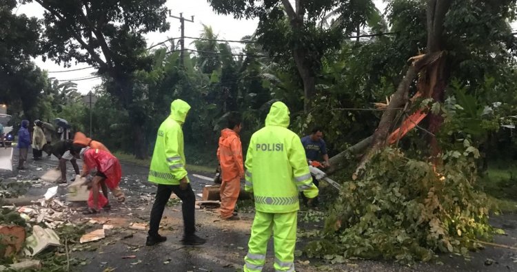 Jembrana - Kesigapan personel Polsek Mendoyo kembali ditunjukkan dalam merespons dampak cuaca ekstrem. Saat melaksanakan patroli pemantauan situasi kamtibmas dan arus lalu lintas, Polsek Mendoyo bergerak cepat menangani peristiwa pohon tumbang di Jalan Raya Denpasar–Gilimanuk, tepatnya di Lingkungan Bilukpoh, Kecamatan Mendoyo, Kabupaten Jembrana, Minggu (18/1/2026).